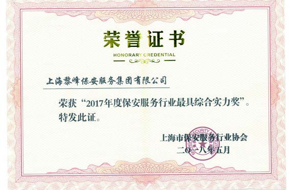 2017年 榮獲“中國百強優秀企業”、“中國保安行業十大誠信企業”、“中國社會責任感企業”