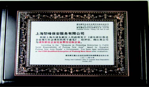 2012年 成為上海市浦東新區保安協會副會長單位